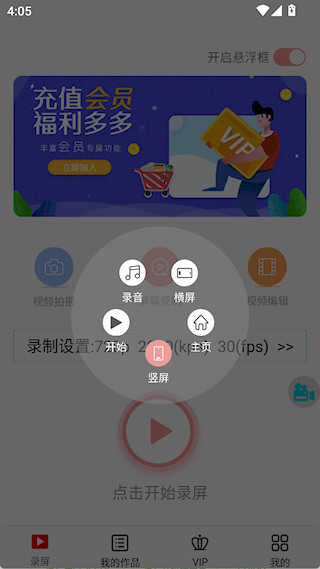 3、开启悬浮窗后可以便捷使用录音、录屏功能
