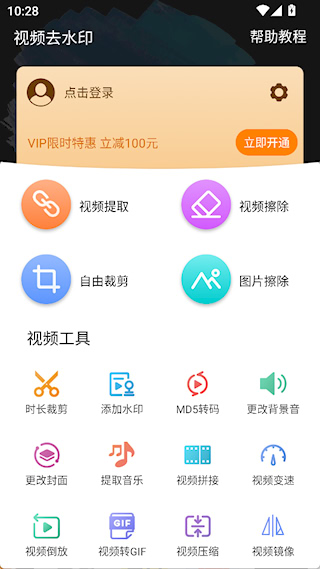1、打开app,能看到视频提取、视频擦除等功能