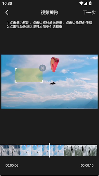 3、视频擦除使用边框选择需要擦除的部分进行处理