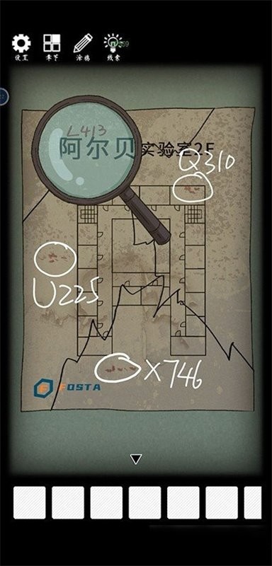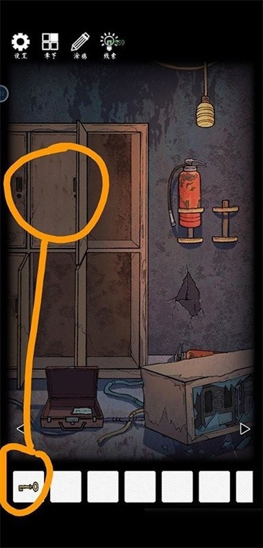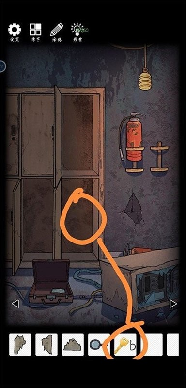 1、用钥匙 b 拧开门锁,成功解锁后从中获取残缺的图,该图为后续解谜关键道具。