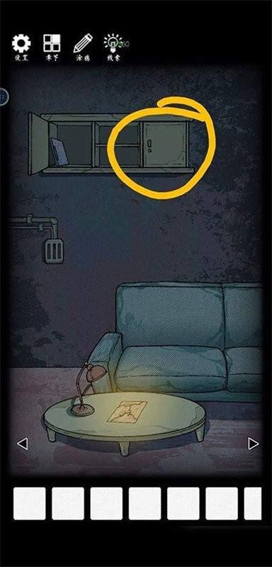 4、向右转动视角,使用钥匙 a 开启对应柜子,从柜子内部获取铁棍,为后续操作做准备。