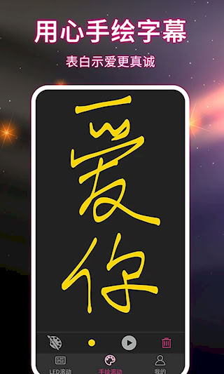 5、支持"手绘动态字体"创作,可录制笔迹轨迹生成个性化滚动文字。笔触颜色与动画效果均可自定义,实现真正原创内容。