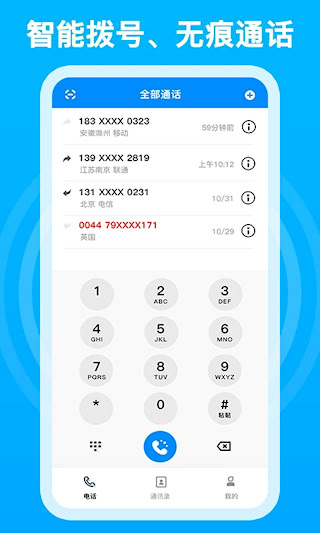 千千电话是一款专注于通讯安全与隐私保护的拨号工具。利用虚拟号码技术隐藏主叫方的真实信息,有效防止号码被标记或泄露。集成了网络电话与免费电话功能,支持国内与国际长途通讯,满足多种通话场景需求。能显著减少骚扰电话与不必要的通信干扰。对于需要频繁联系客户或进行商务沟通的场合,其防标记特性保证了号码的清洁度。免费通话模式降低了长途通讯成本,而高清音质则保障了信息传递的清晰与准确。