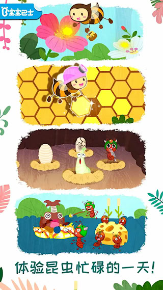 5、昆虫认知模块结合游戏化交互,涵盖蜜蜂与蚂蚁的体态特征、社会分工等知识点。互动探索方式激发主动探究兴趣,深化自然科普认知。