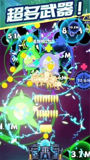 3、设定不同副武器解锁机制与主武器升级机制,使弹幕射击种类更丰富,视觉冲击更强烈。