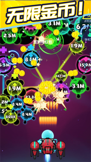 3、完成所有冒险后开启无尽射击之旅,闯关玩法有趣;每种病毒标注攻击次数,切勿碰到病毒。