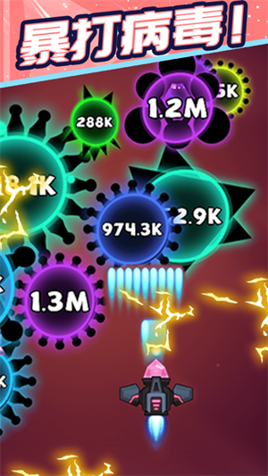 4、可在屏幕上自由穿梭,通过左右移动控制飞机不被击落;病毒四处逃窜,完成精彩探险,享受刺激对抗。