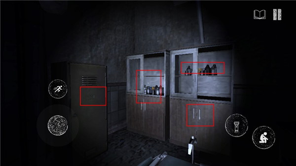3、左侧按钮可控制角色移动与跳跃,右侧按钮能打开手电、控制角色蹲下等。