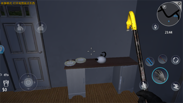 1、进入后默认开启故事模式,先拿起地面上的撬棍随身携带