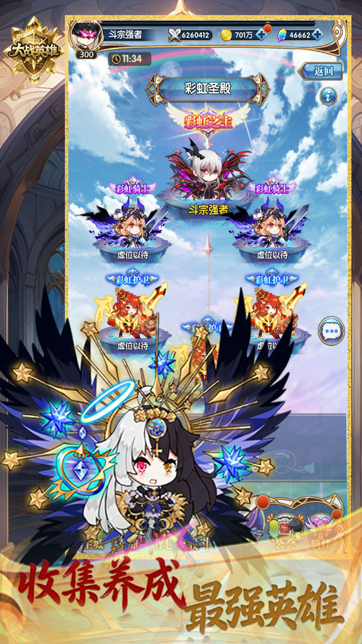 1、大战英雄是一款采用竖屏模式的二次元卡牌放置手游。游戏以精致的Q版日系画风,描绘了五大阵营共同对抗恶灵少女的奇幻冒险篇章。单手持握即可完成所有核心操作,离线状态下角色仍会自动积累资源,真正实现“下线不耽误成长,上线即刻收获”的轻松体验。