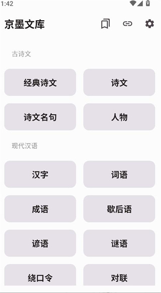2、在首页挑选诗文、成语、对联或谜语模块,选定后即可开启学习。