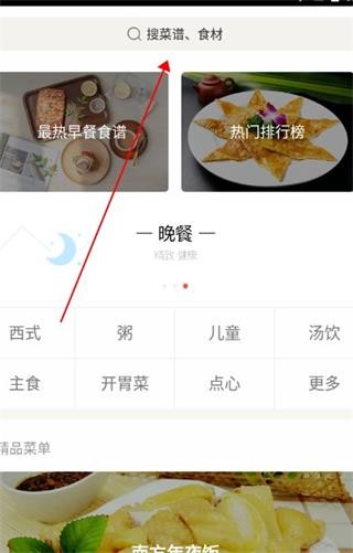 1、进入早餐食谱 APP 后,在软件首页上方的搜索栏中,即可开始查找所需食谱。