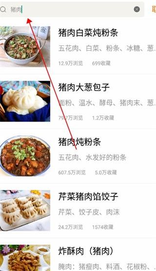 2、只需在搜索栏输入关键词,系统便会自动筛选并显示相关的料理食谱,快速定位目标。