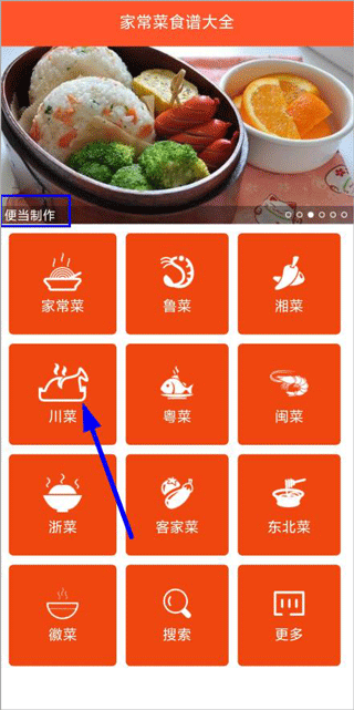 1、打开已安装好的家常菜食谱大全软件,首页展示各类菜系分类及餐品制作合集,点击心仪菜系即可进入。