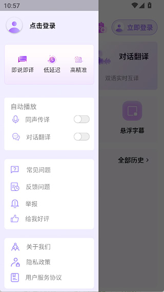 3、在侧边栏内能设置语音翻译是否自动朗读