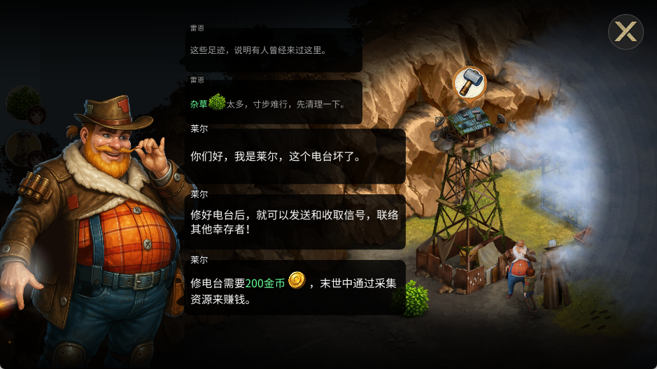 4、探索与扩张:扩展领土,开辟新资源区,与其他幸存者势力互动,注意防范敌对势力,守护营地安全。