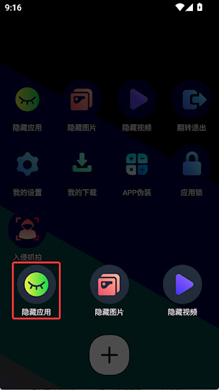 2、添加隐藏项:进入隐私空间后点击 “+” 号,选择需隐藏的文件或应用即可完成添加。