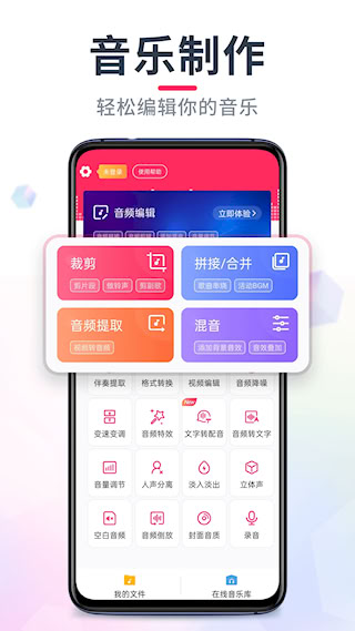 1、支持从本地存储导入音频文件,可自由设定裁剪起止点,完成各类音频片段的精准剪切与个性化制作