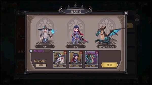 3、挑战采用自动战斗机制推进王座争夺,魔灵阵容的合理搭配是通关的核心关键要素。