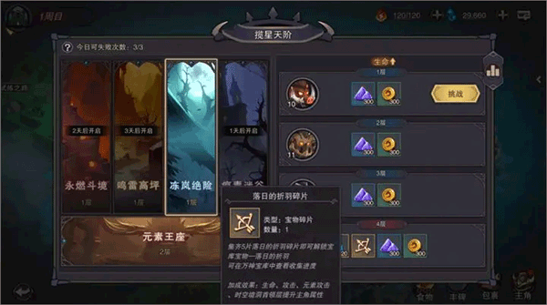 1、揽星内设有五座元素塔供挑战,每座塔对应专属元素属性,构成核心挑战体系。