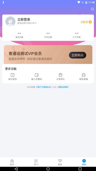4、切换到 “我的” 板块,在此处登录个人账户,即可同步学习数据、查看学习记录等。