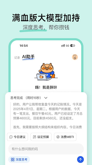 1、 核心功能为智能语音与文本记账。只需说出“午餐28元”这样的自然语句,系统即可自动解析其中的金额、分类与日期信息,完成一笔记录的创建,大幅简化输入步骤。