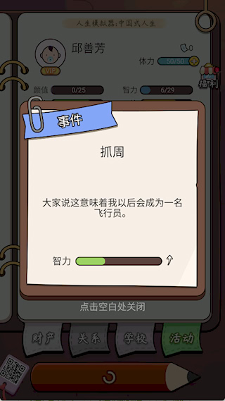 2、属性提升:根据职业需求,针对性提升属性,前期可多参与提升智力的活动,为高考和职业发展打基础。