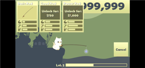 4、积累一定金币后,可购买渔具,点击左上角【渔具】按钮即可操作,能让鱼钩抛得更远、钓更多鱼。