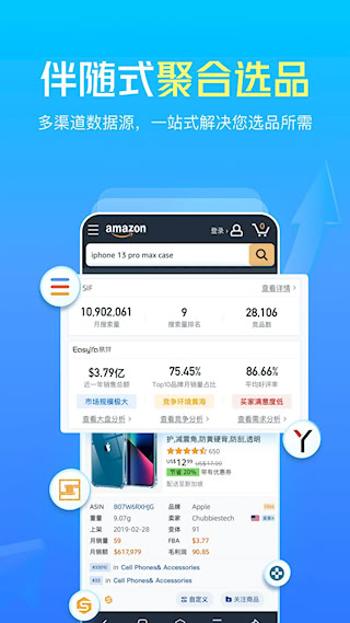 1、聚合多源数据平台实现跨系统查询,实时呈现产品销量、流量结构及利润预估。选品过程可同步调用供应链信息,形成完整市场分析报告。