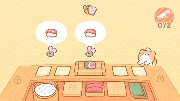 2、制作寿司:客人入座后,点击小熊厨师,按顺序选食材制作,制作好客人用餐会留下金币。