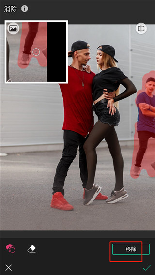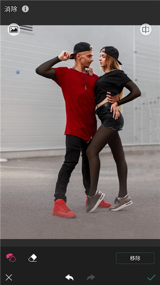 4、独家移除工具:拥有别家美颜相机没有的智能物体移除工具,只需用手指操作,就能轻松移除不需要的背景内容。