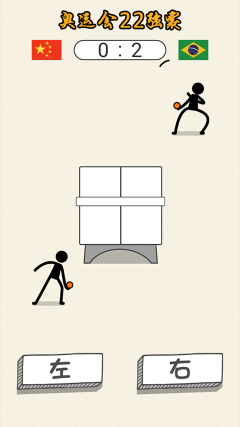 3、随后开始对战,操作仅有左右两个按钮;观察对手回球落点,左案板按左按钮,右案板按右按钮。