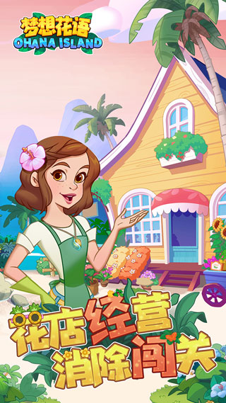 1、核心玩法为消除 + 经营模式,每通关一次消除可获取一颗星星,攒够星星能解锁或装扮花店部分区域。