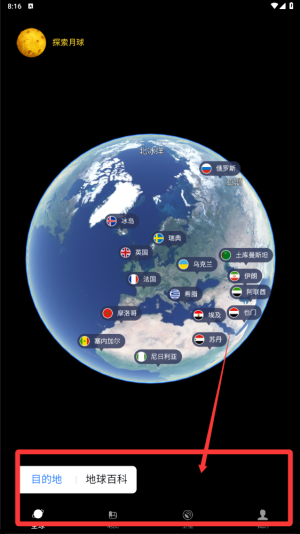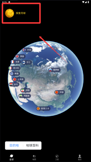 4、这是您的目的地功能跟地球百科功能,帮助您快速定位到您想要的精确内容。