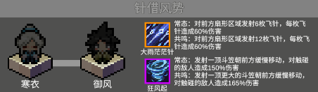 常态:对前方扇形区域发射6枚飞针,每校飞针渲成60%6伤害