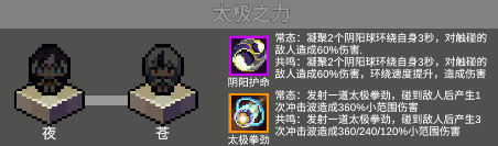 共鸣:凝聚2个阴阳球环统自身3秒,对触碰的敌人造成60%伤害,环绕速度提升,追成伤害