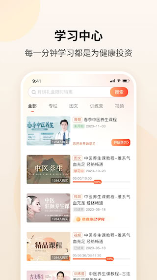 3、 核心课程均以高清视频形式呈现,由业内资深医师或专家亲自讲解示范。课程内容涵盖推拿按摩技法、实用养生指南等,讲解细致,便于理解和模仿练习。