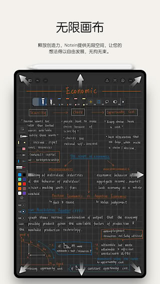 2、 提供高达1000%的自由页面缩放功能,可将书写区域瞬间扩展十倍。在保持书写流畅度的前提下,单页内容容量大幅提升,此功能对PDF与图片文件同样适用。