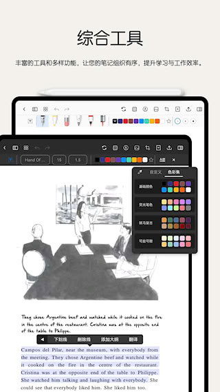 5、 界面布局注重功能可达性,常用工具呈现在触手可及的位置。手势操作经过人体工学优化,长时间书写不易疲劳,专注度保持良好。