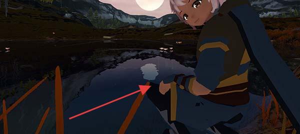 1、靠近水边时,按箭头指示方向观察【水面】情况。