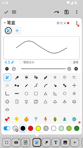 3、通过底部工具添加各种元素,笔盒内有丰富的图形,一键点击添加
