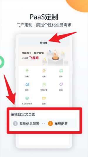 3、进入经销商页面,可在编辑自定义页面中依次完成基础信息配置和布局配置,满足个性化业务需求。