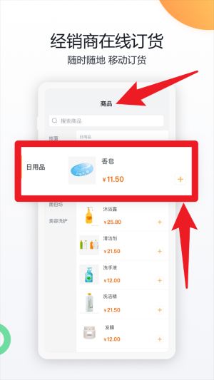 4、在商品页面,可浏览商品分类并点击+号将所需商品加入购物车,支持随时随地移动下单。
