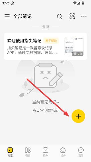 1、下载安装后点击进入指尖笔记APP,点击【+】可创建笔记