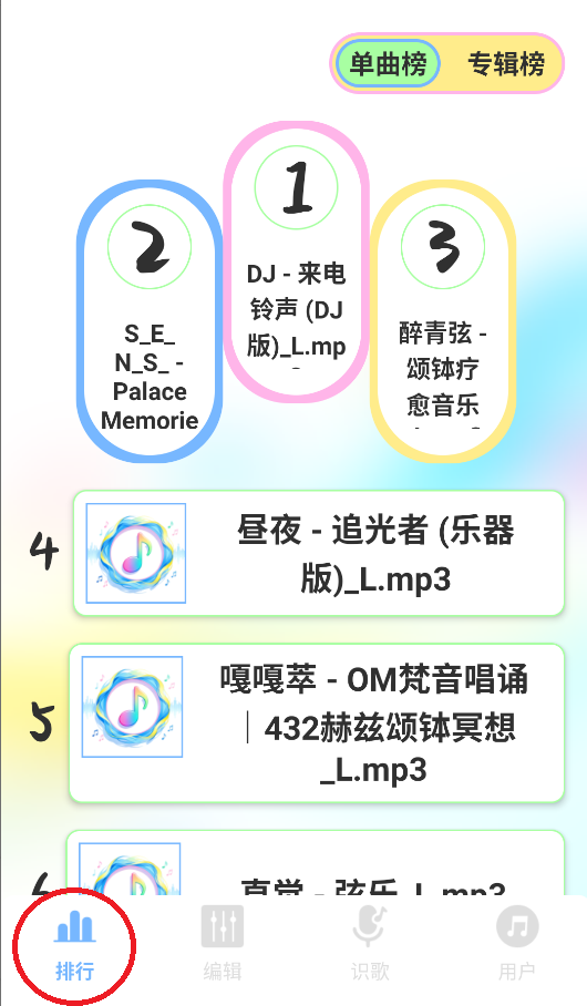 提供 “单曲榜” 和 “专辑榜” 两种榜单分类。