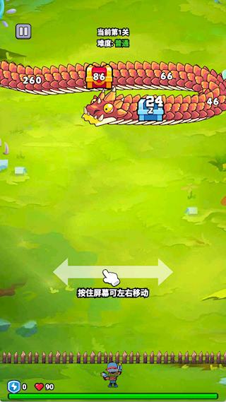 1、移动射击:按住屏幕左右移动角色,自动射击巨龙,专注躲避攻击,简单操作中尽享射击快感。
