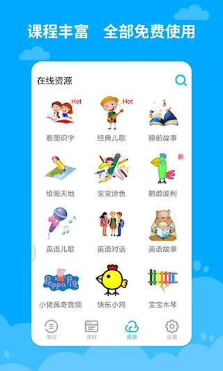 5、宝宝学英语提供丰富的在线启蒙教育资源,所有阅读与学习材料均可免费使用。这些资源经过专业筛选,适合早期教育的不同需求。
