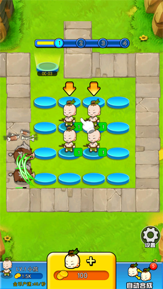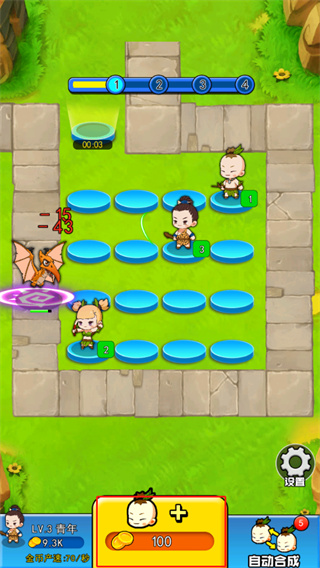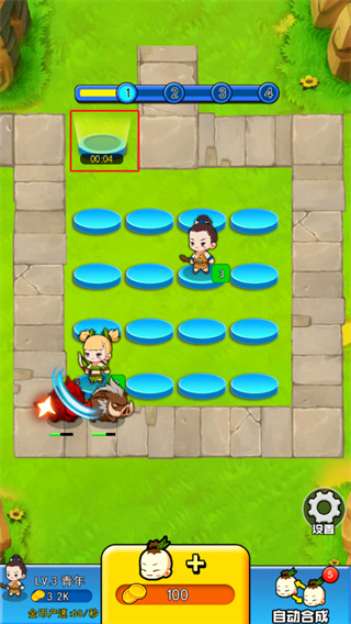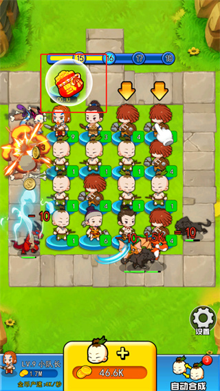 4、还可以点击游戏右下角的按钮来进行英雄的自动合成,每次会持续3分钟;