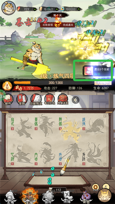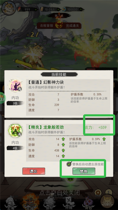 2、获得到更高级功法,进行替换。