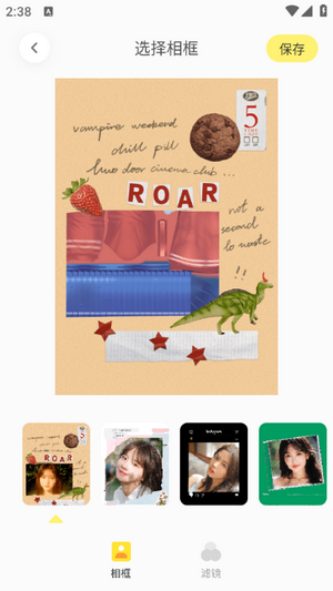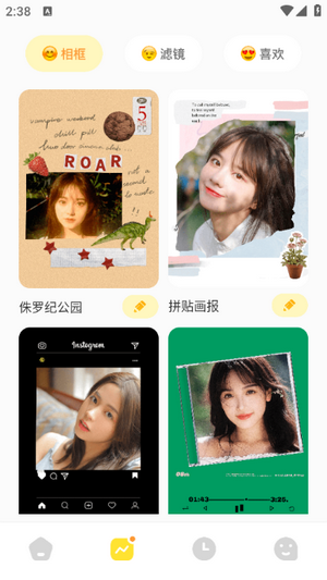 2、在主页中选择需要处理的图片,即可为图片添加相框和滤镜内容,让照片呈现出不同风格。